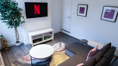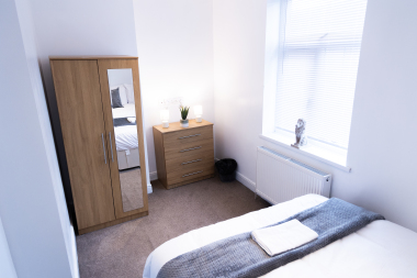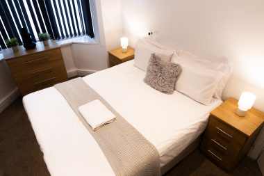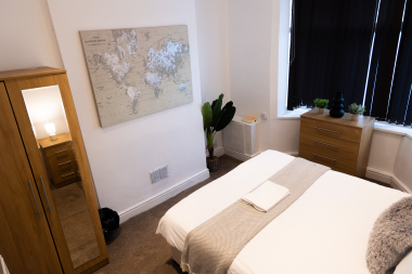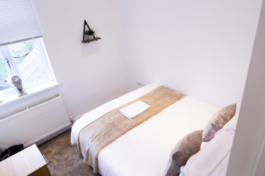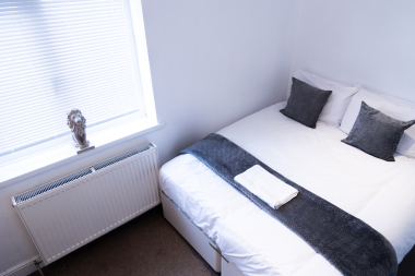 This spacious 4-bedroom home blends modern decor with cozy touches, making it perfect for contractors, group gatherings, and family retreats. The stylish living areas feature plush seating and warm lighting, creating a relaxing atmosphere. Each bedroom is designed for comfort, showcasing a mix of neutral tones and vibrant accents for a bright, restful environment. With plenty of space and on-road parking, this home caters to large groups seeking comfort, convenience, and style for their stay.